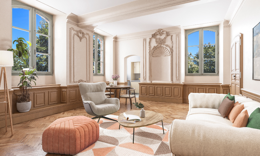 Les appartements bénéficieront de grands volumes et d’une luminosité remarquable, notamment grâce à d’imposants ensembles menuisés du XVIIIᵉ siècle. Le parc sera revalorisé dans le respect des tracés historiques et avec des essences locales. Certains logements disposeront de jardins privatifs.