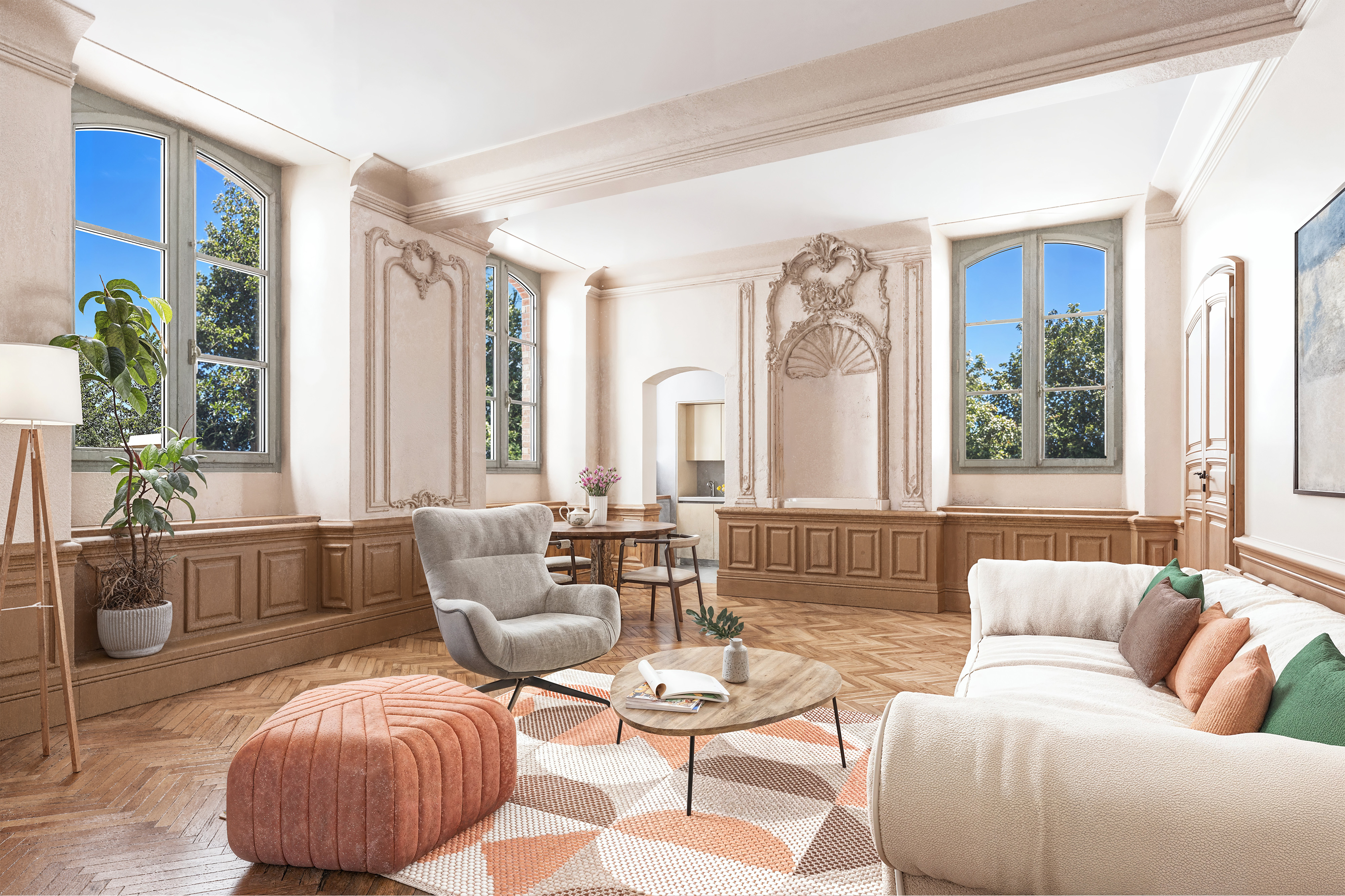 Nouveau Siècle mènera la restauration du château avec des artisans qualifiés — gypsiers, ferronniers, menuisiers — dont le savoir faire permettra de sublimer les éléments remarquables du bâti. Chaque intervention sera réalisée dans le respect des techniques traditionnelles, afin de préserver l’âme du lieu tout en l’adaptant aux usages contemporains. Les appartements offriront des volumes généreux, de belles hauteurs sous plafond et une lumière naturelle abondante. Certains logements seront traversants, d’autres profiteront de jardins privatifs, offrant à chaque résident une expérience unique.