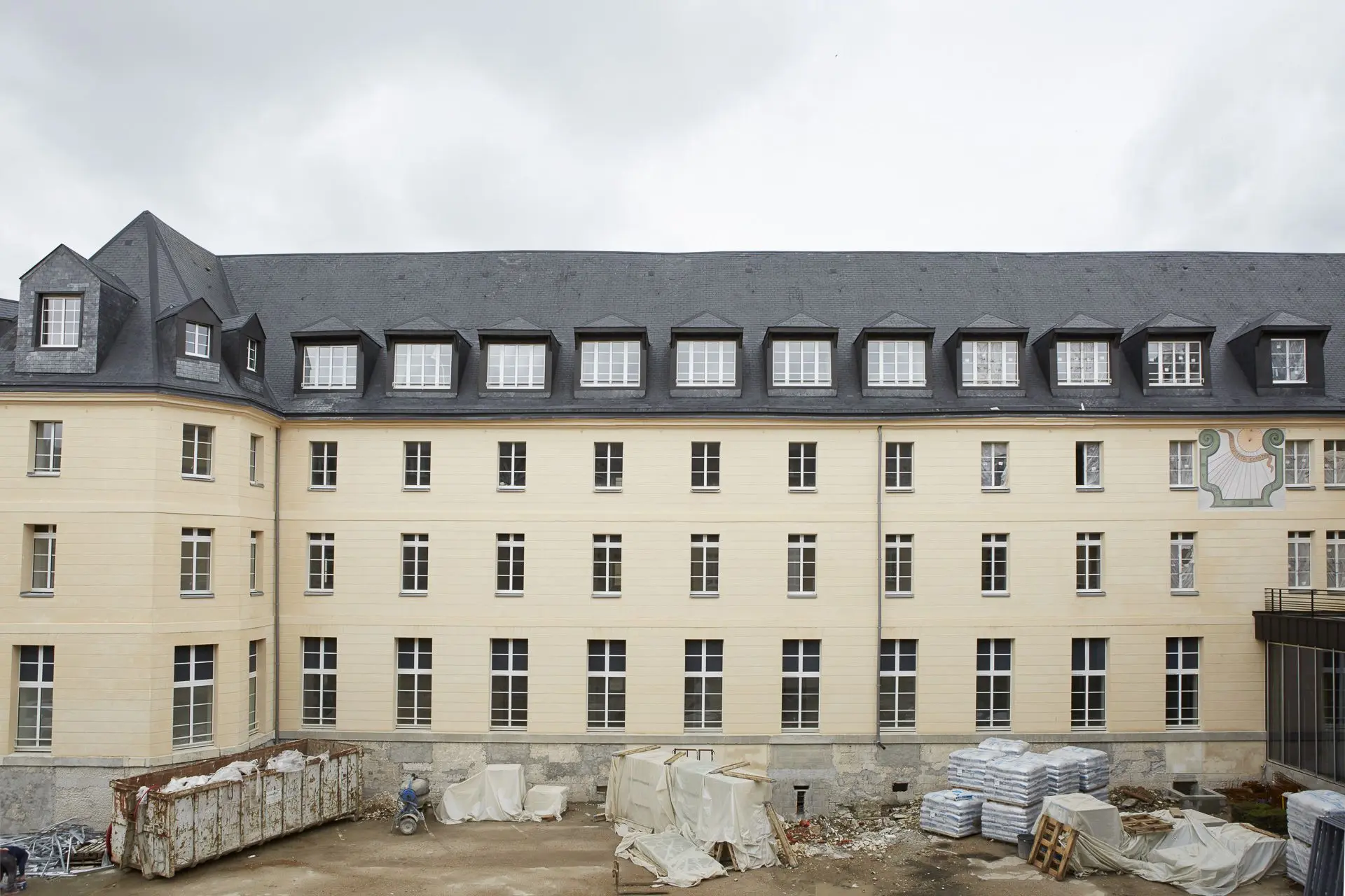 Début 2023, c'est encore un nouveau chapitre qui débute pour ce bâtiment d'exception, entièrement rénové mais ayant conservé toute sa dimension patrimoniale. Les éléments en pierre de la façade ont été conservés et restaurés avec des enduits plâtre-chaux. Sa célèbre fresque, représentant un cadran solaire, a elle aussi été rénovée. Sans oublier les lucarnes et éléments de zinguerie refaits à neuf, et sa couverture, entièrement remaniée, qui se pare aujourd'hui d’ardoises naturelles. Géré par le groupe Les Jardins Arcadie, le complexe achevé hébergera notamment une résidence pour séniors composée de 105 logements, du studio au T3. L'entrée du site se fera par un jardin, imaginé pour épouser avec élégance ce lieu de vie historique.