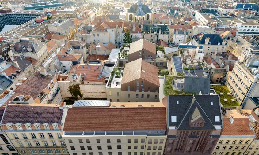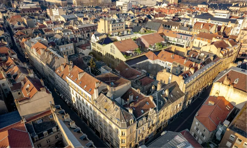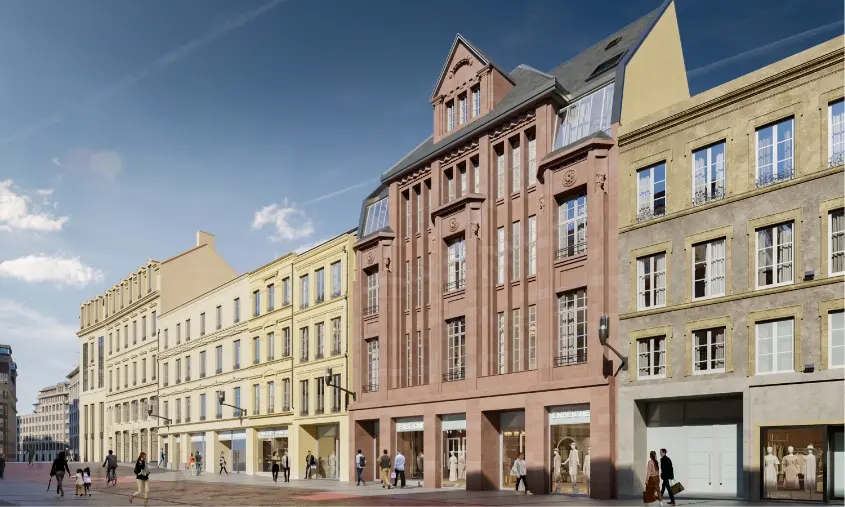 Partie intégrante du patrimoine messin, le bâtiment iconique et emblématique abritait jusqu’alors l’enseigne Le Printemps. Son emplacement est exceptionnel et sa façade remarquable en grès des Vosges et pierre de Jaumont est préservée et restaurée. Le projet s’adapte aux usages et attentes des futurs habitants tout en revalorisant le patrimoine ancien et les savoir-faire existants pour offrir des appartements de demain, plus durables et responsables. Un programme diversifié qui garantit la mixité des usages des futurs habitants. La création de jardins et la mise en place de logements qualitatifs répondent aux besoins des populations locales.